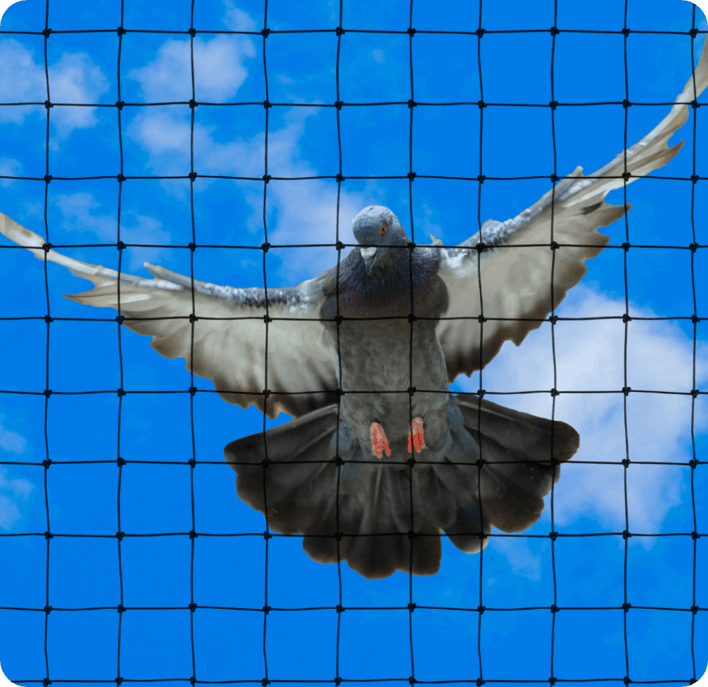 ハトがバルコニーに飛来する最終目的は巣作りです。初めは寝床として利用し、安全性が確認でき次第、パートナーを連れて巣作りを開始します。そのため、ハトにバルコニーが安全と思われるまでは飛来箇所へ防鳥剣山や防鳥ワイヤーを設置すれば効果が期待できますが、一度、巣作りモードに入られてしまうと防鳥ネットでバルコニーを囲い物理的に侵入できないようにするしか対策方法はありません。ハトは体が大きいのでネットは50mm目のものが最適です。