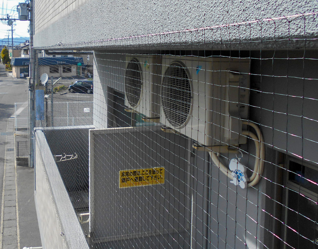 バルコニー他、あらゆる建造物に設置できる鳥類侵入防止用単線ネットです。