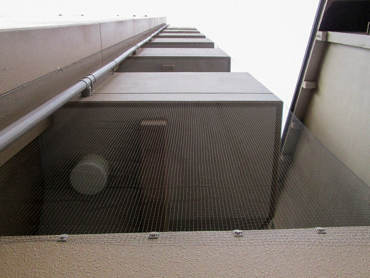 バルコニー他、あらゆる建造物に設置できる鳥類侵入防止用単線ネットです。